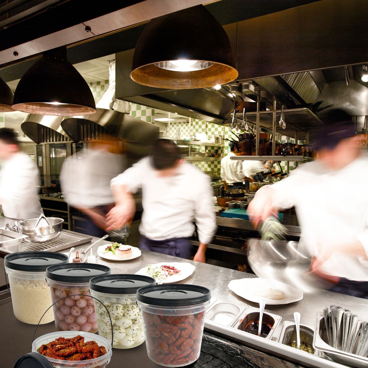O balde para alimentos de 3,2 litros pode ser utilizado em uma ampla variedade de aplicações: