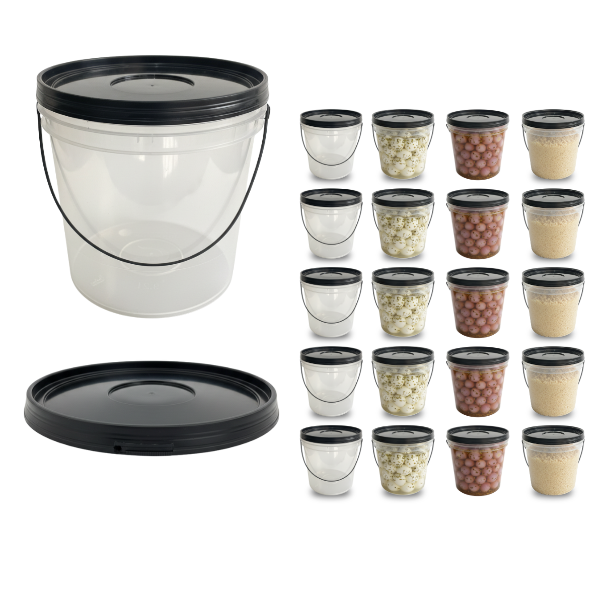 Baldinho com Tampa Preta Transparente 3.2L e Alça Preta - Kit 20 Peças